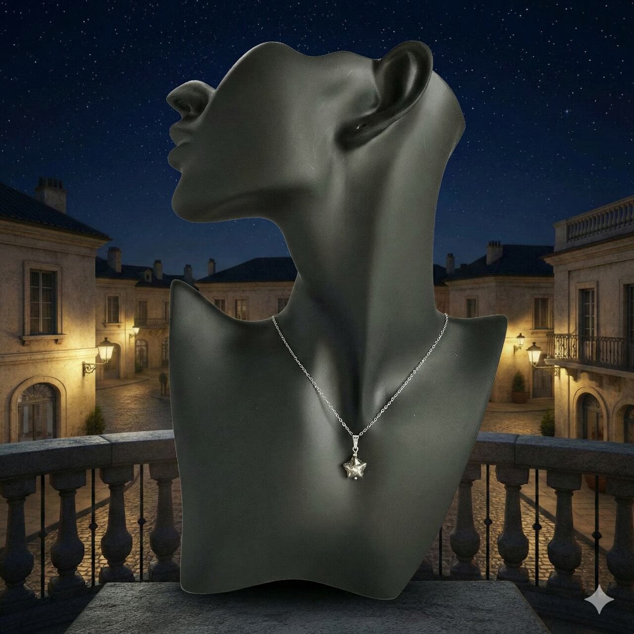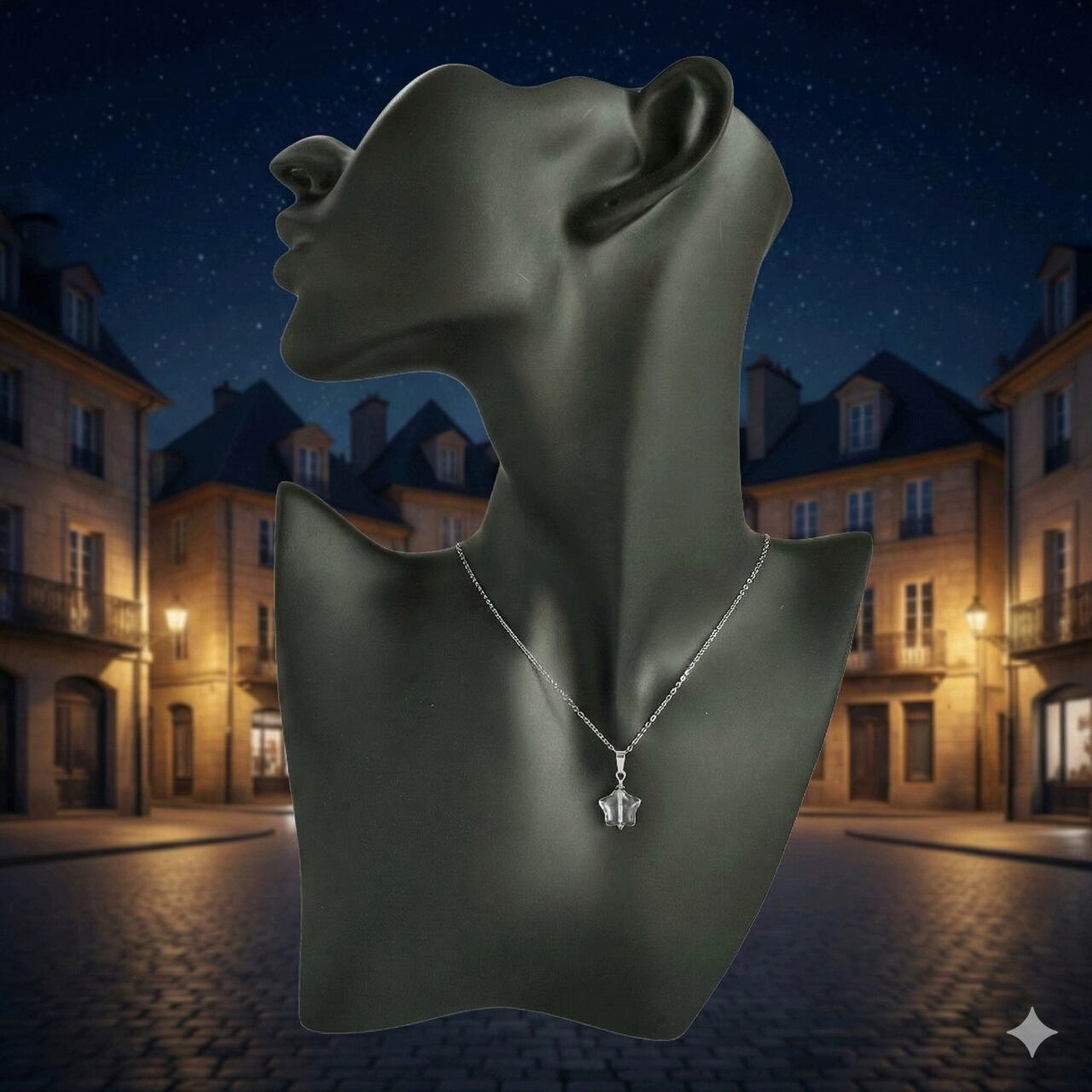 そんな北極星が、チェコの職人の手でつくられた美しい星形のビーズの姿を借りて、ネックレスになりました。