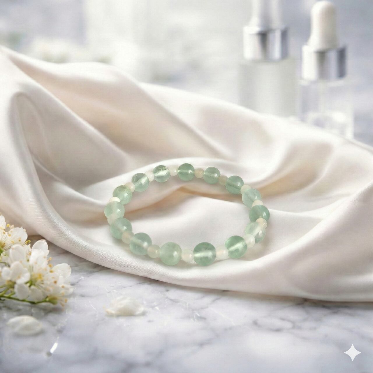 グリーンフローライトとホワイトムーンストーンのブレスレット スプリングフィールド